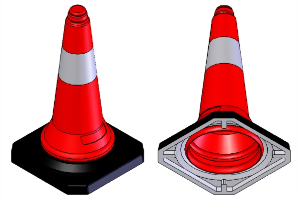 Ο κώνος ασφαλείας κινδύνου είναι κατασκευασμένος από πολυαιθυλένιο (PE). Έχει λεία επιφάνεια, χωρίς αυλακώσεις και κυματισμούς, είναι ολόσωμος χωρίς ραφές και δεν προξενεί ζημιές στα διερχόμενα οχήματα κατά την πρόσκρουση.