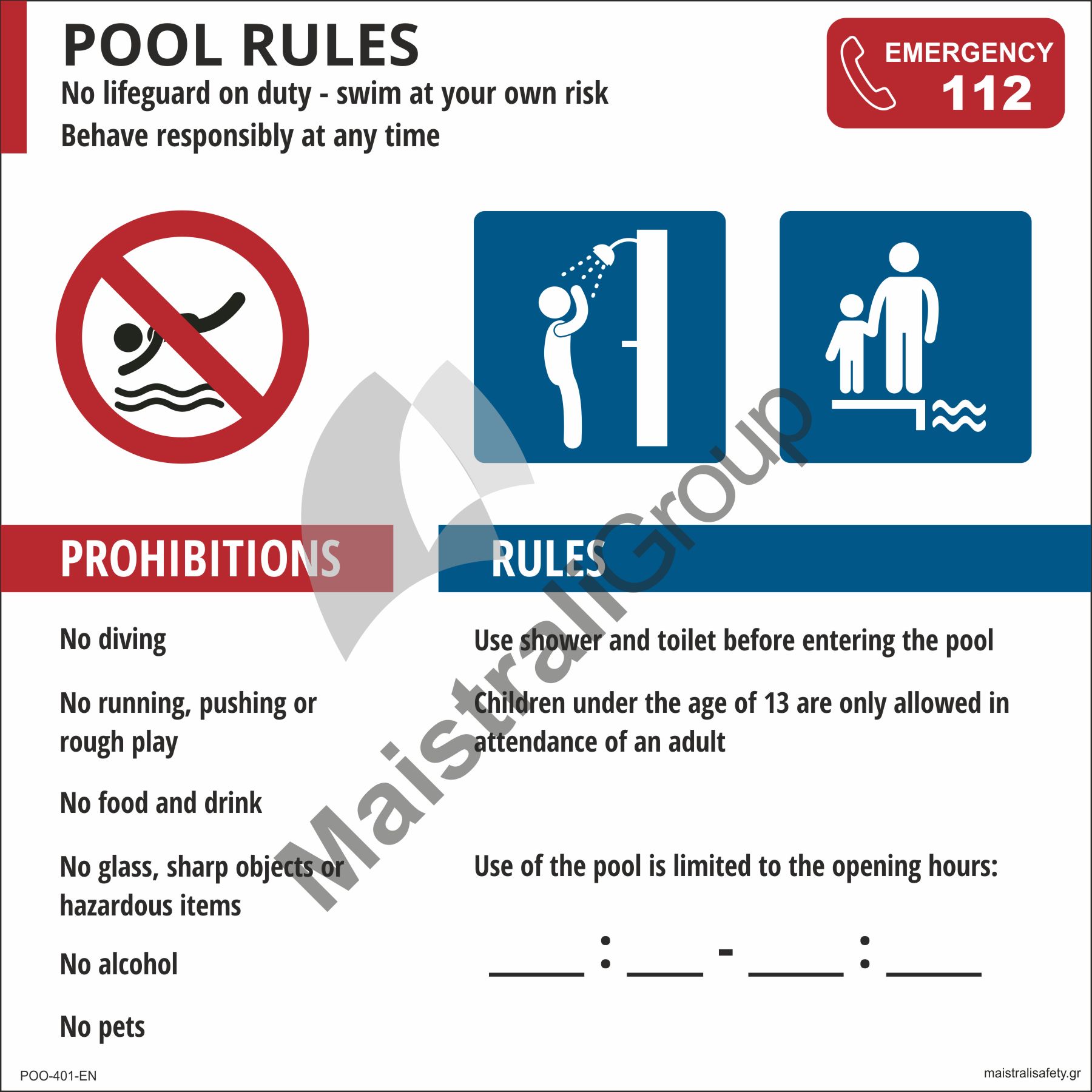 • Πινακίδα Pool Rules